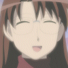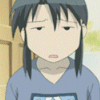 Description: Yomi from Azumanga Daioh. She is a long-haired brunette with glasses, looking to the side with a stunned expression.